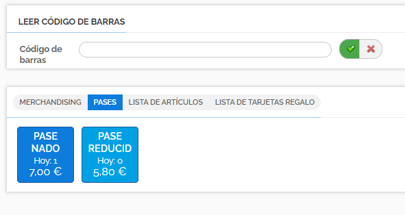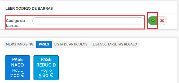 Es además posible (si se utiliza el control de acceso) buscar al cliente a través de la lectura de su tarjeta de acceso haciendo clic en el botón "Pasar Tarjeta" |