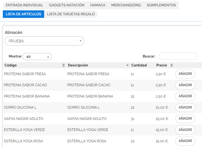 | venta anónima | para efectuar una venta a un cliente que no está registrado en SPORTRICK y que no es necesario registrar, será suficiente seleccionar el artículo para añadirlo al carrito de compras y seguir con el pago. Todos los recibos procedentes de las ventas anónimas se pueden visualizar a través del botón "Documentos" . |