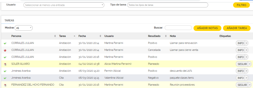- cómo visualizar y filtrar las tareas CRM