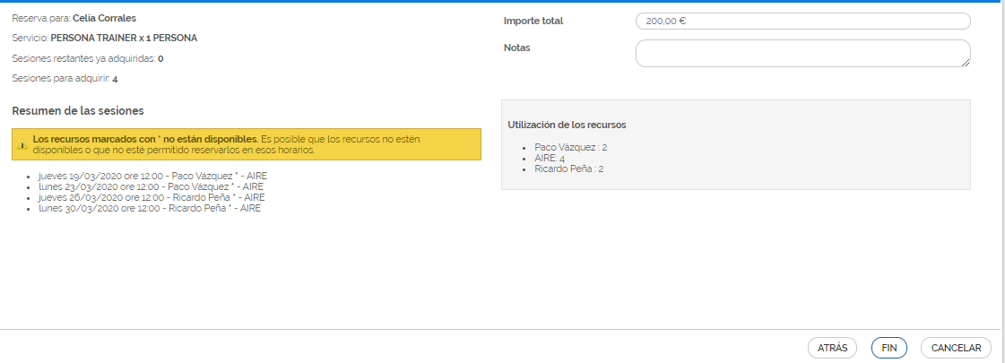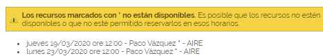 - el sistema proporcionará un resumen de las reservas. Los recursos con un * al lado son aquellos que se reservaron aunque no estuvieran disponibles.