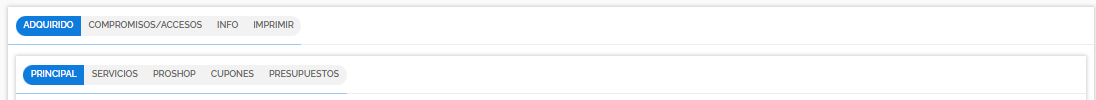 En la parte central del perfil de usuario se encuentra la sección ADQUIRIDO relativa a las compras del cliente.