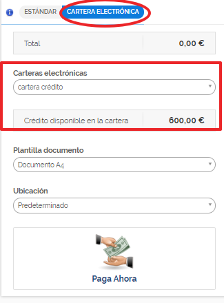 El cliente puede utlizar el crédito de su cartera electrónica para el pago.