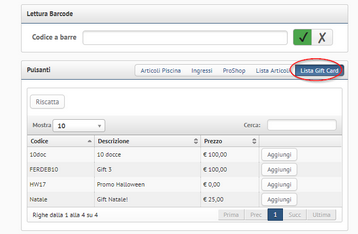Selezione Gift Card tramite Codice a Barre