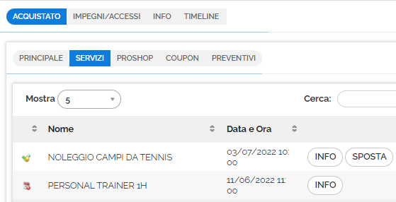 Nella parte centrale dell'anagrafica cliente alla voce Acquistato -> Servizi si trova un riepilogo dei servizi acquistati/prenotati dal cliente.