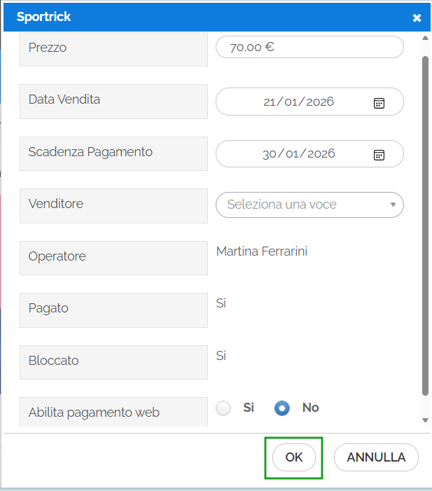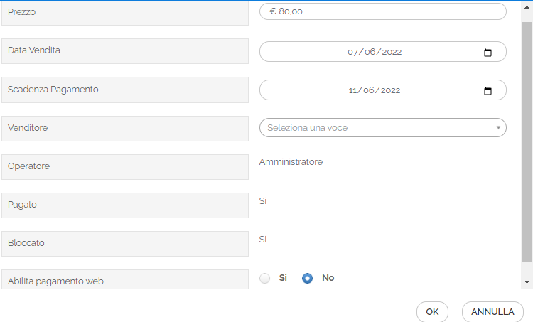- eliminare la vendita del servizio in caso non sia stato ancora pagato. In questo caso bisognerà prima eliminare la prenotazione e successivamente la vendita.