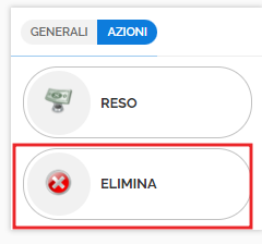 - effettuare il rimborso del servizio tramite il tasto RESO (nella sezione Azioni, di fianco a Generali). Per maggiori informazioni si veda il manuali sui Resi;