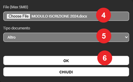 4. Caricare il documento;