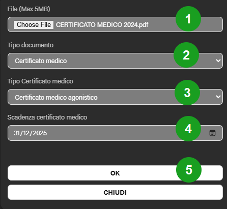 - Selezionare Certificato Medico come Tipo Documento;